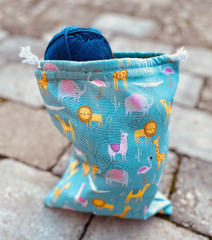Denne pose er med mintgrøn baggrund og dyr på savannen.