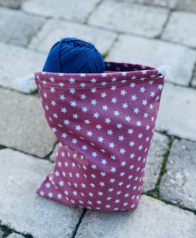 Denne pose er med bordeaux baggrund med hvide stjerner.